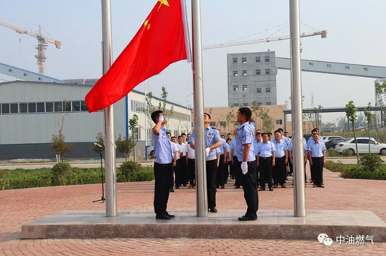 迎著朝陽,升旗手們護(hù)衛(wèi)著鮮艷的五星紅旗入場,他們著裝整齊、步伐矯健。伴隨著《義勇軍進(jìn)行曲》的響起,大家集體行注目禮,莊嚴(yán)肅穆。冉冉升起的五星紅旗激發(fā)了廣大員工不斷向上的工作斗志,點(diǎn)燃了大家強(qiáng)烈的愛國熱情。