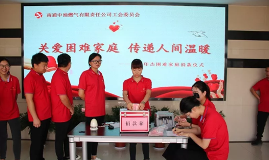 8月1日上午,南通中油燃?xì)庥邢挢?zé)任公司工會(huì)委員會(huì)在LNG站組織開展了一場以“關(guān)愛困難家庭,傳遞人間溫暖”為主題的捐款活動(dòng),為遭遇變故的運(yùn)營管理部職工高印杰一家愛心捐款。