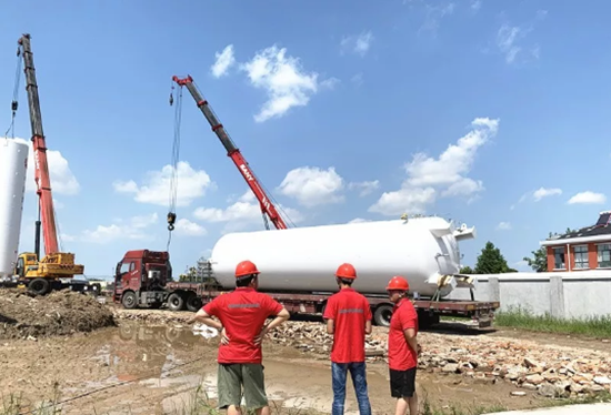 在項(xiàng)目建設(shè)過程中,大豐公司積極完成LNG氣化站所需的各項(xiàng)手續(xù),2019年8月30日,大豐滬蘇園區(qū)LNG氣化站儲(chǔ)罐正式入駐中油中泰大豐燃?xì)庥邢薰巨k公大樓正前方。