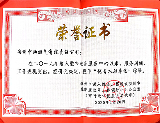 近日,濱州市召開2019年度市政公用報裝優(yōu)秀單位表彰大會,會議表彰通報了四個“優(yōu)秀報裝單位”和八名“報裝先進個人”,濱州中油燃氣公司榮獲“優(yōu)秀報裝單位”稱號,公司駐市政務(wù)服務(wù)中心首席代表劉通同志榮獲“報裝先進個人”稱號。濱州公司是全市唯一獲得此項榮譽的燃氣公司,也是在獲獎單位中唯一一個非本地政府控股的企業(yè)。