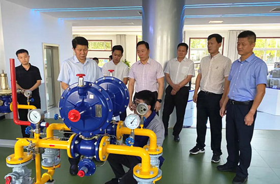 張寶亮一行先后對公司實訓中心、檢測中心、PE燃氣管材、調(diào)壓設備生產(chǎn)車間及調(diào)壓器項目部進行實地參觀調(diào)研,并認真聽取了公司發(fā)展相關情況匯報。