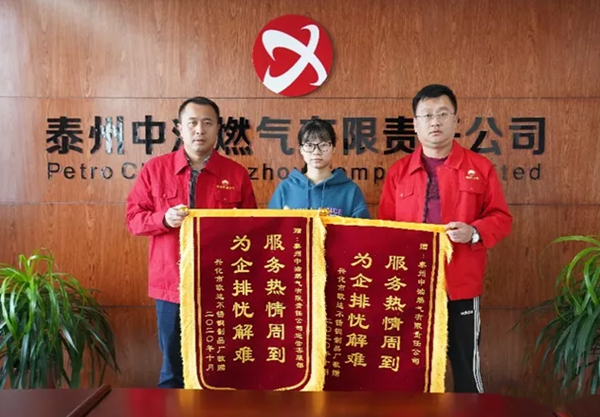 11月3日上午,泰州中油燃?xì)庥邢挢?zé)任公司收到兩面寫著“服務(wù)熱情周到,為企排憂解難”的紅色錦旗,一面是對泰州中油切實為客戶解決困難表示感謝,另一面是對客服中心提供快捷、便利的服務(wù)體驗表示肯定,這是今年大力推進營商環(huán)境工作以來,泰州中油第二次收到來自客戶贈予的錦旗。