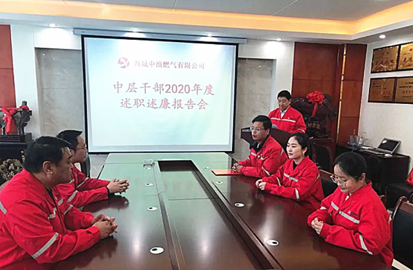 1月30日上午,芮城中油燃?xì)庥邢薰菊匍_了2020年度中層管理干部述職述廉報(bào)告會(huì)。總經(jīng)理李向前、常務(wù)副總經(jīng)理李志宏、財(cái)務(wù)總監(jiān)周小南等經(jīng)營班子成員及各部門負(fù)責(zé)人參加了會(huì)議。會(huì)議由李向前總經(jīng)理主持。