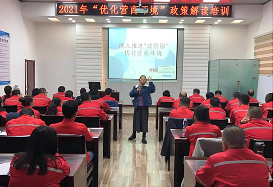 近年來,國家和省市政府持續(xù)深化“放管服”改革,不斷優(yōu)化營商環(huán)境,出臺了一系列的惠企利民和優(yōu)化營商環(huán)境的政策措施。為推進事業(yè)部 “放管服”改革和優(yōu)化營商環(huán)境工作,更好地了解掌握相關(guān)政策法規(guī),3月19日,青海事業(yè)部特邀了青海省委黨校資深講師李桂娥教授開展“優(yōu)化營商環(huán)境”政策解讀專題培訓,事業(yè)部各公司高層、中層、基層管理人員共60多人參加了培訓。