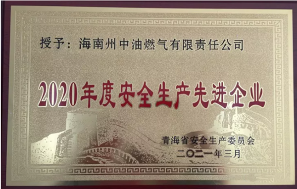 2020年,海南州中油燃?xì)庥邢挢?zé)任公司在上級(jí)政府主管單位及集團(tuán)公司的正確領(lǐng)導(dǎo)下,緊緊圍繞“安全第一、預(yù)防為主、綜合治理”的安全生產(chǎn)方針,著力提升公司安全管理水平,不斷夯實(shí)安全生產(chǎn)基礎(chǔ),嚴(yán)守安全底線,推進(jìn)“一崗雙責(zé)”“三個(gè)必須”安全工作,經(jīng)省安委會(huì)考核,被青海省安全生產(chǎn)委員會(huì)授予“2020年度安全生產(chǎn)先進(jìn)企業(yè)”榮譽(yù)稱號(hào)。