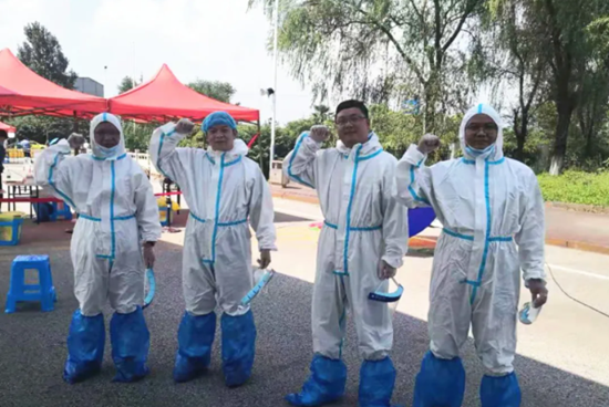 36℃的艷陽天下,密不透風的防護服變成了貼身的蒸籠,汗水順著臉頰向下淌,橡膠手套內結滿了汗珠,即便靜坐不動,熱氣也蒸得人汗如雨下。盡管悶熱的防護服、炎熱的天氣令他們汗流浹背,但他們仍然默默堅守了4個小時,耐心為市民解答問題,指引市民填寫基本信息,作分流引導,錄入采樣信息…確保核酸采集工作有條不紊進行,為這一次的核酸檢測保駕護航。此次志愿活動,展現(xiàn)了中油人的良好形象,以擔當詮釋初心,用行動踐行使命,真正為群眾辦實事,為防疫獻力量。