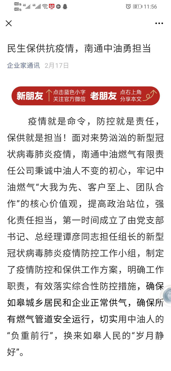 《企業(yè)家通訊報》:民生保供抗疫情 南通中油勇?lián)?dāng)