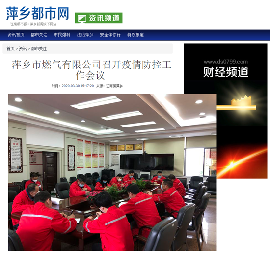 《萍鄉(xiāng)都市報》:萍鄉(xiāng)市燃氣有限公司召開疫情防控工作會議