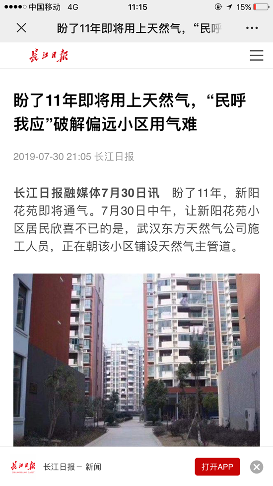 《長(zhǎng)江日?qǐng)?bào)》盼了11年即將用上天然氣,“民呼我應(yīng)”破解偏遠(yuǎn)小區(qū)用氣難