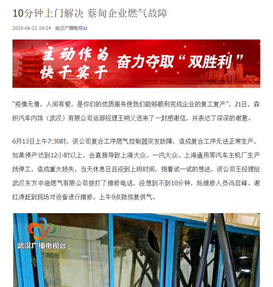 《武漢廣播電視臺》十分鐘上門解決蔡甸企業(yè)燃氣故障