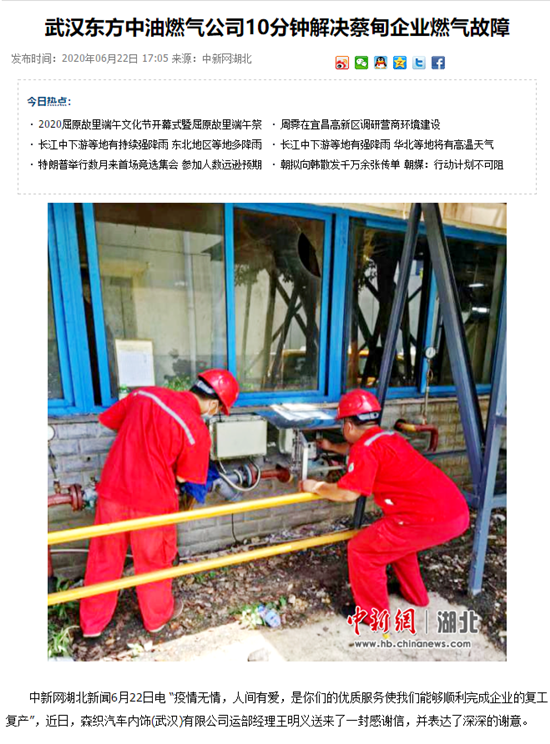 《中新網(wǎng)湖北》武漢東方中油燃?xì)夤?0分鐘解決蔡甸企業(yè)燃?xì)夤收?/div>