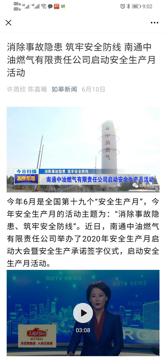 《如皋新聞》消除事故隱患 筑牢安全防線--南通中油燃?xì)鈫影踩a(chǎn)月活動