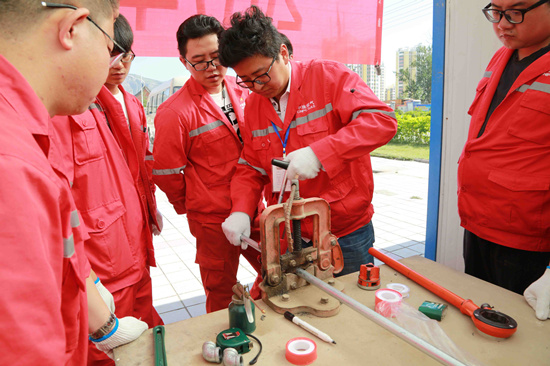 這次培訓由實操講師在工位現(xiàn)場講授、操作演示,通過兩天的學習,學員初步掌握了繪制安裝施工圖、鍍鋅管手工切割、手工套絲,管道簡單安裝等方面的知識,著重提升對居民燃氣管道戶內(nèi)安裝動手能力。學員們結(jié)合自身工作實踐,積極參與課程互動討論,提出自己的問題和見解,大家學技術、提技能的愿望強烈,實操培訓收到良好效果。
