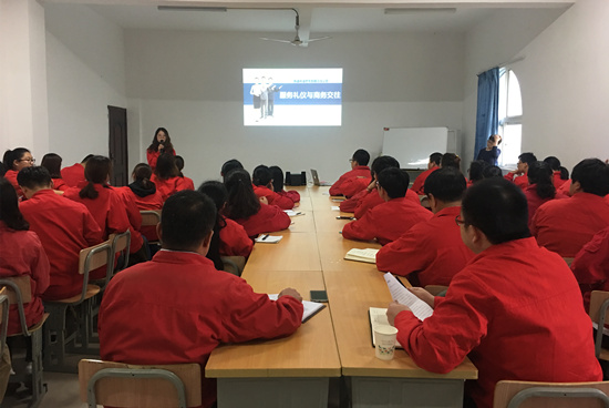 培訓會上,顧老師通過理論知識和實際訓練相結合,詳細講解了儀容儀表、面部表情、文明用語、穿著搭配、待人接物等服務禮儀中的文明舉止規(guī)范。并著重介紹了前臺人員的服務禮儀、溝通技巧、如何處理突發(fā)事件等等。讓大家對個人形象、客戶心理、如何有效處理客戶投訴有了更深刻的理解和認知。在老師與員工的互動環(huán)節(jié)中,現場氣氛十分熱烈,受訓人員收益良多。