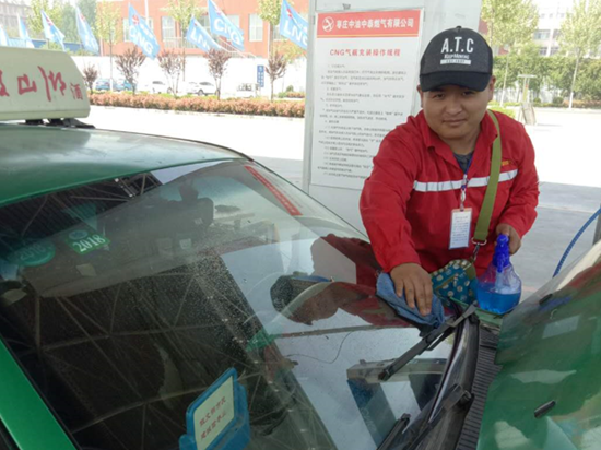 此次活動的主要內(nèi)容為:要求充裝人員利用為車輛充氣的短暫時間,嫻熟地為每一輛車清洗前擋風玻璃及后視鏡。一套流程下來,既滿足了客戶用氣的需求,又通過這短暫的時間拉近與客戶的距離,讓客戶感受到“貼心而溫馨”。