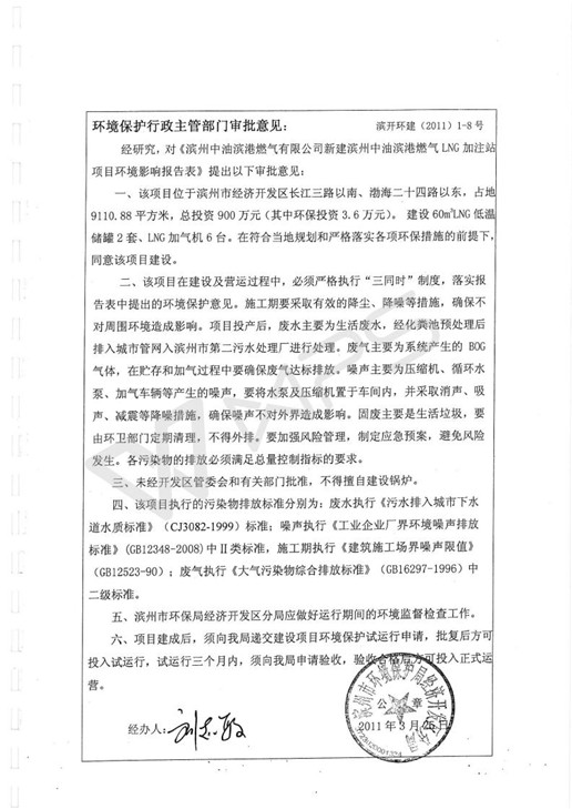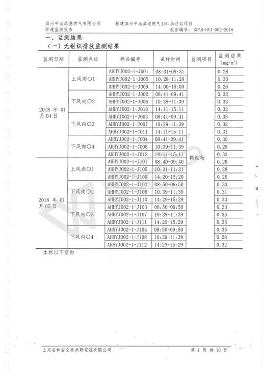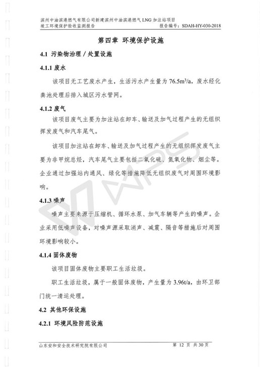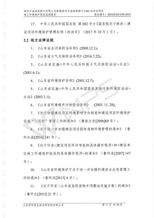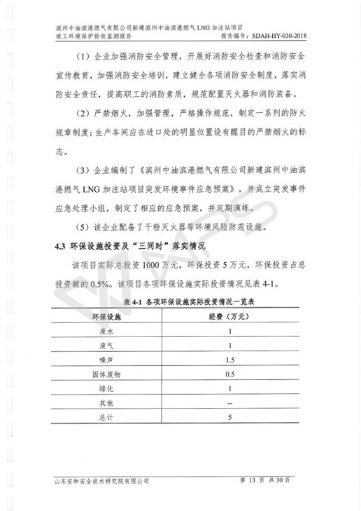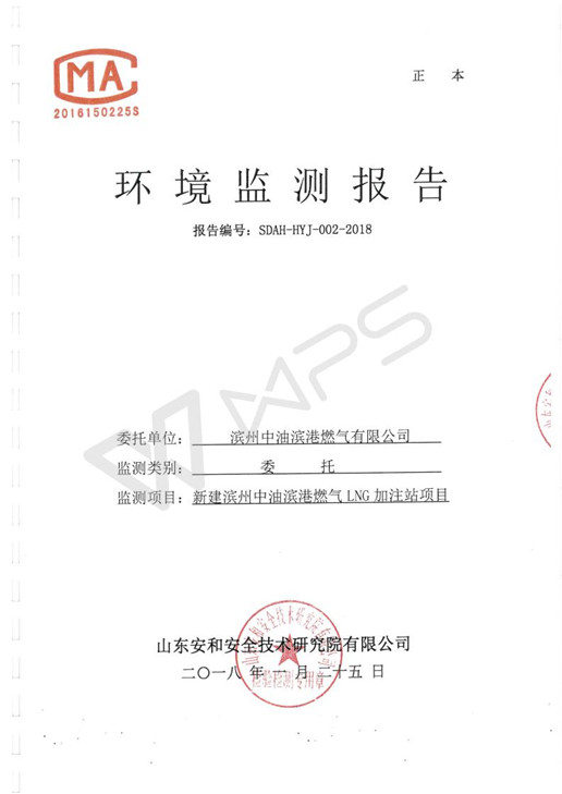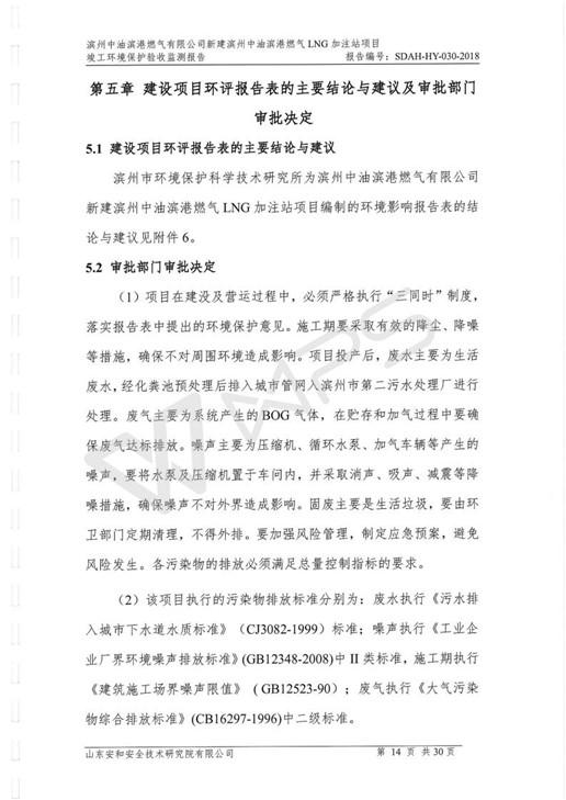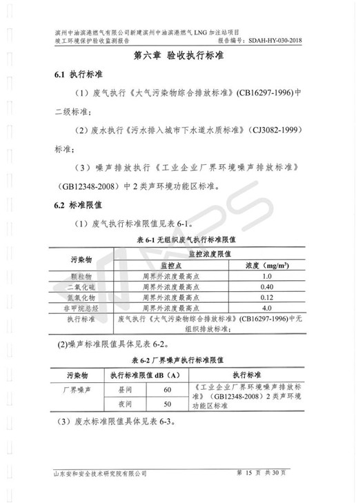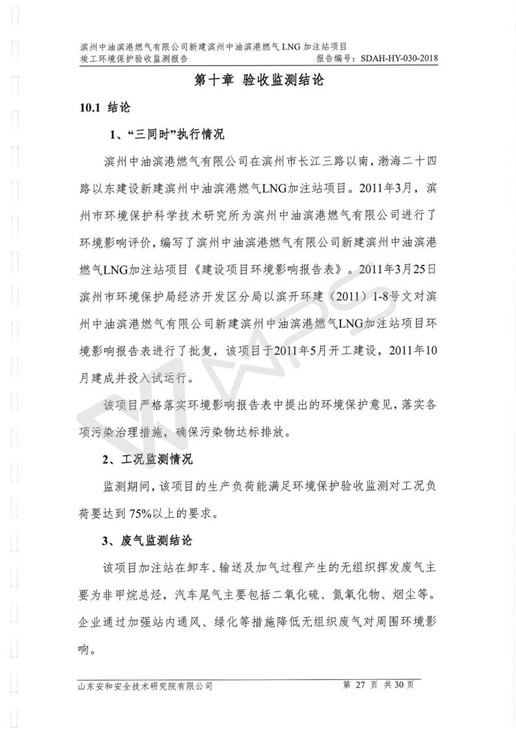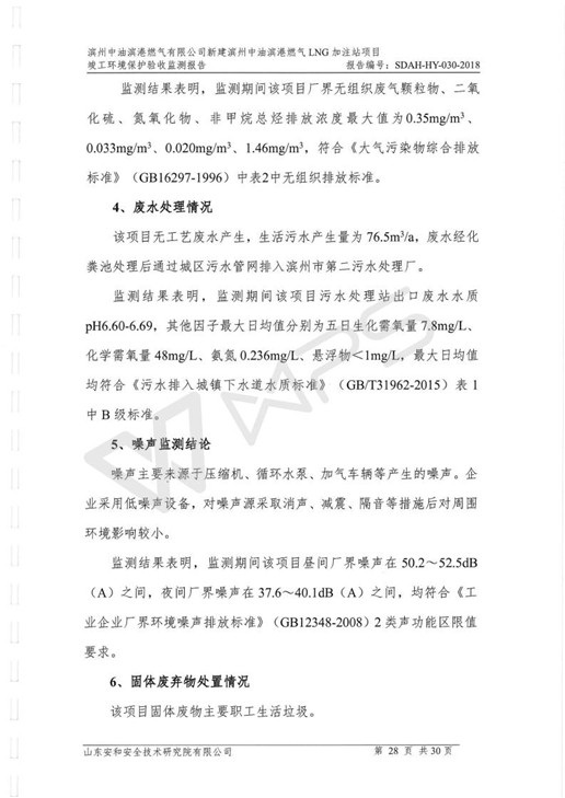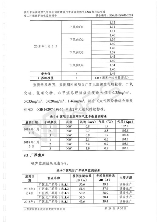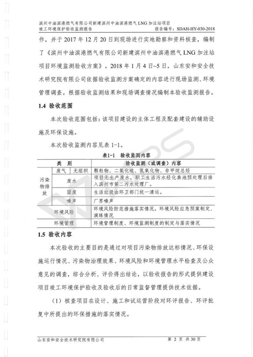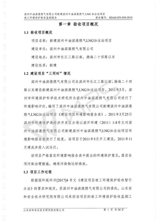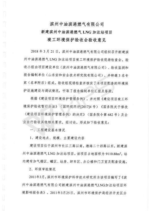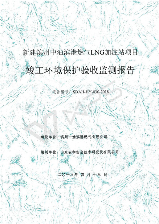 新建濱州中油濱港燃氣LNG加注站項目竣工環(huán)境保護驗收監(jiān)測報告