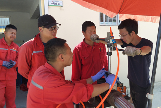 在培訓(xùn)中,廠家技術(shù)人員對(duì)參加培訓(xùn)人員現(xiàn)場(chǎng)進(jìn)行手把手指導(dǎo)。從設(shè)備的構(gòu)造到工藝原理,從拆卸步驟到發(fā)現(xiàn)問(wèn)題故障排除,全面細(xì)致、一絲不茍的進(jìn)行講解。把復(fù)雜的不停輸帶壓開(kāi)孔設(shè)備講解的透明化、程序化、簡(jiǎn)單化,大大提高了參加培訓(xùn)人員的技能水平。
