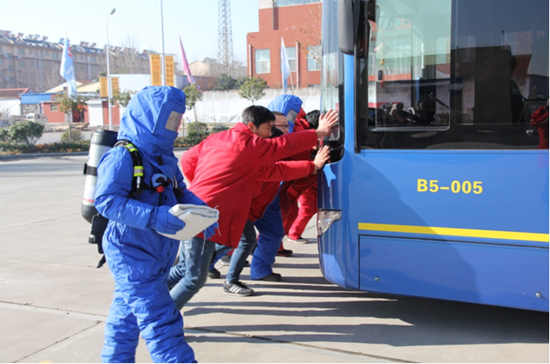 演練現(xiàn)場(chǎng)公交車充裝過(guò)程中發(fā)生泄漏,演習(xí)人員當(dāng)即按照《事故應(yīng)急救援預(yù)案》展開應(yīng)急處置,經(jīng)過(guò)有序的應(yīng)急處置后,事故現(xiàn)場(chǎng)得以控制,解除應(yīng)急狀態(tài),恢復(fù)正常運(yùn)營(yíng)。此次演練公司總經(jīng)理黃鵬高度重視,安排周密,團(tuán)結(jié)協(xié)作,有效的檢驗(yàn)了整體協(xié)作能力和應(yīng)急處置能力,為公司安全生產(chǎn)奠定了基礎(chǔ)。