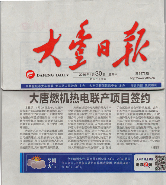 大唐燃機熱電聯(lián)產(chǎn)項目簽約