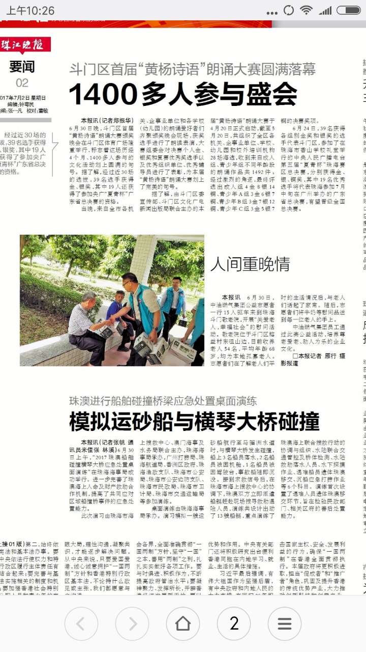 《珠江晚報》7月2日報導(dǎo)“人間重晚情”