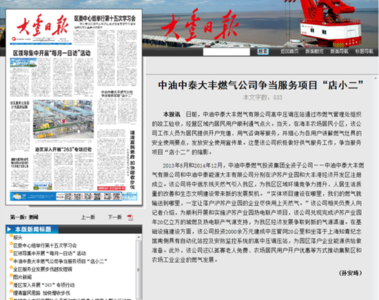 中油中泰大豐燃氣公司爭當(dāng)服務(wù)“店小二”